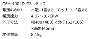 ノーリツ ガスファンヒーター デラックスタイプ GFH-4004D-G3(オリーブ)都市ガス12A・13A用 ※ガスコード別売