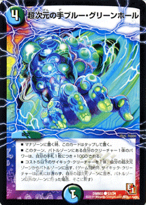デュエルマスターズ カード DMR-03 エピソード1 第3弾 ガイアール・ビクトリー」 デュエルマスターズ カード 超次元の手ブルー・グリーンホール ■レアリティ:コモン ■種類:呪文 ■文明:水/自然文明 ■コスト:(4) [特殊能力] マナゾーンに置く時、このカードはタップして置く。